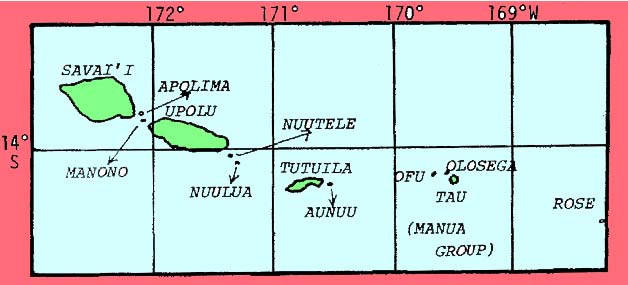 Savaii, Upolu, and Tutuila, with several neighboring smaller