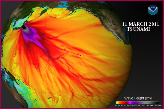 NOAA graphic of tsunami energy flux and deep water wave heights.