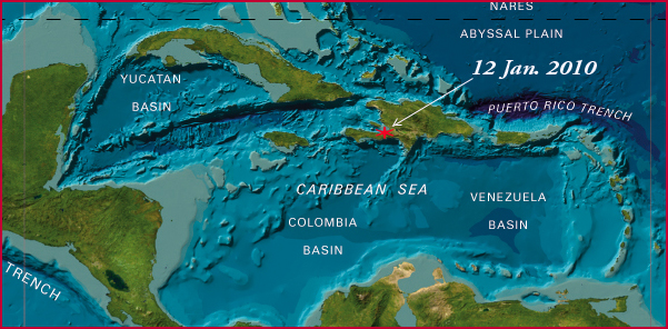 Frequent earthquakes in the Caribbean region have been responsible for great damage and loss of lives in the past. Major earthquake disasters occurred in Jamaica in 1692 and 1907, in Cape Haitien in 1842 and at Pointe-a-Pitre in 1843 (Tomblin 1991). Haiti is particularly vulnerable to earthquake destruction because of high population density and poor housing construction on steep slopes. There is a long record of past destructive earthquakes. The historic records indicates that most of the large destructive earthquakes in Haiti were related to the the E-W trending Enriquillo-Plaintain Garden fault system (EPGFZ), although destructive earthquakes have also occurred on the Septentrional Fault Zone (SFZ). Large, destructive earthquakes occurred in Haiti in 1701, 1751, 1770, 1842, 1860 and 1887 (Dixon et al., 1998; Scherer, 1912; Mann, 2005).