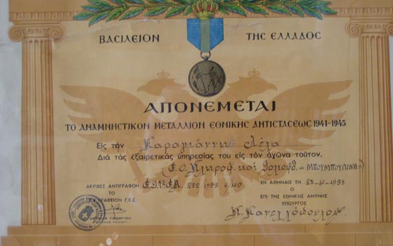 and Medals of Valor awarded after her death to Greece's national