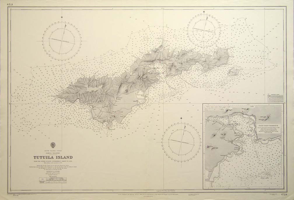 1899 Map of the Island of Tutuila and the harbor of Pago Pago